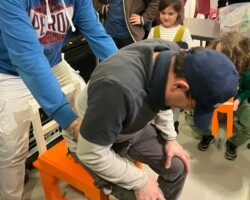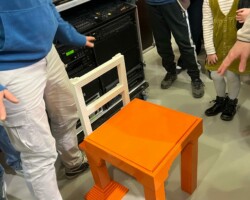 Le but de l’atelier était de construire une chaise suffisamment solide pour permettre au président, Jérome, de s’y asseoir sans qu’elle ne se casse.